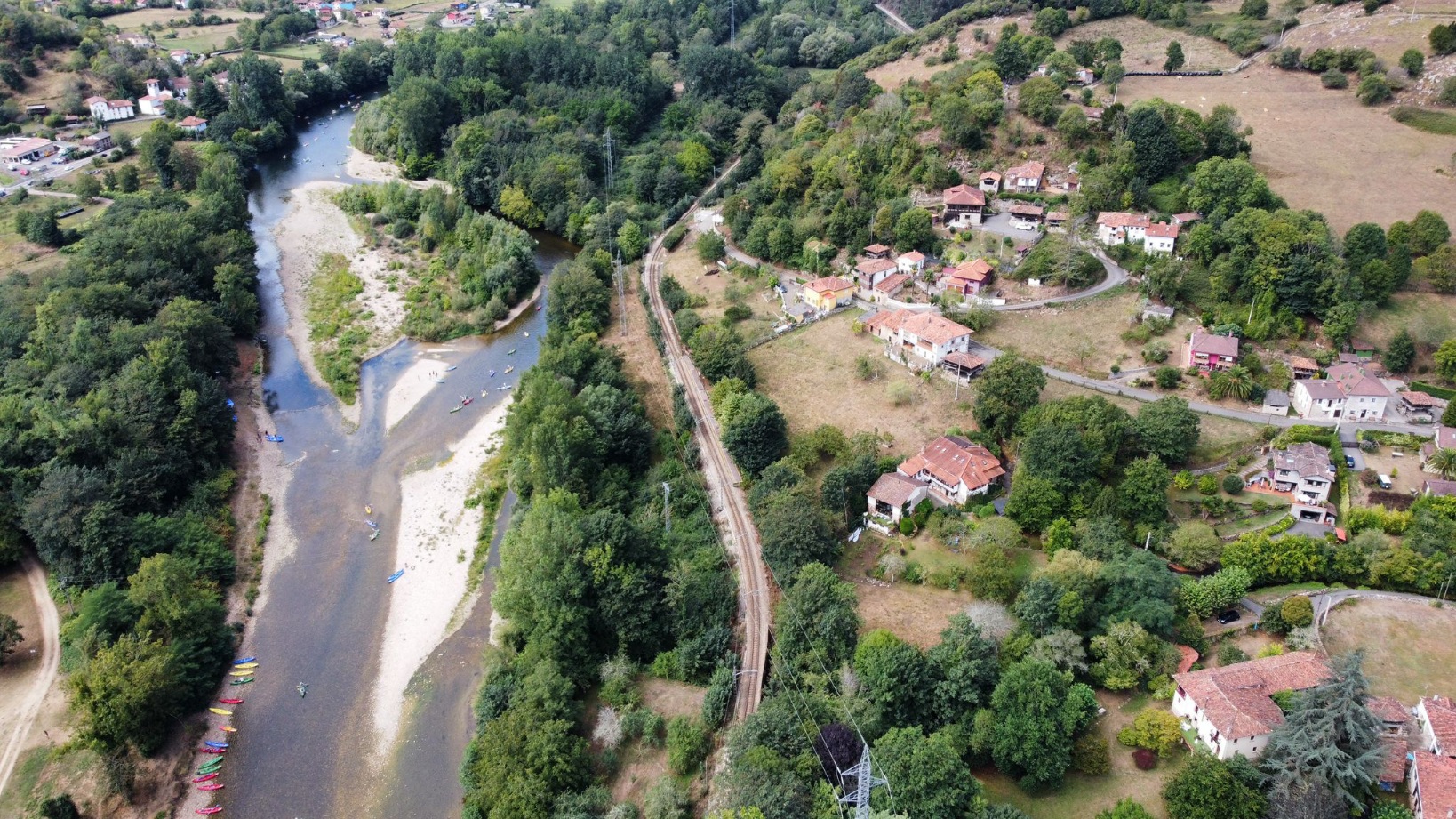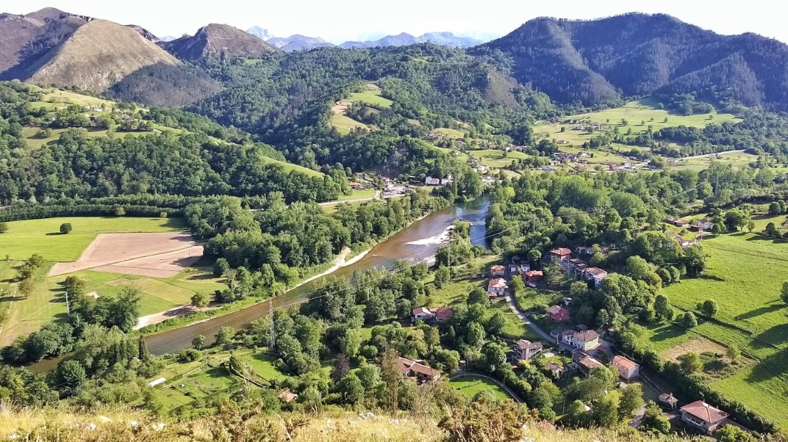 Nuestro pueblo : Fuentes , a orillas del Sella Vista aérea : ubicación de nuestra Casa Rural El Trechal en la parte alta del pueblo , con magníficas vistas sobre el Sella